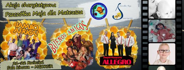 Kochani :) Serdecznie zapraszamy na mega zabawę, która jest związana z naszą akcją charytatywną "Pszczółka Maja dla Mateusza". Impreza odbędzie się w dniach 21-22.IV.2017 r. W piątek o godzinie 17.00 zdzieszowickie przedszkolaki zaprezentują swoje super talenty. W sobotę zapraszamy Was na mega zabawę przy muzyce zespołów Jambo Africa, Buenos Amigos oraz naszego rodzimego zespołu muzycznego Allegro.